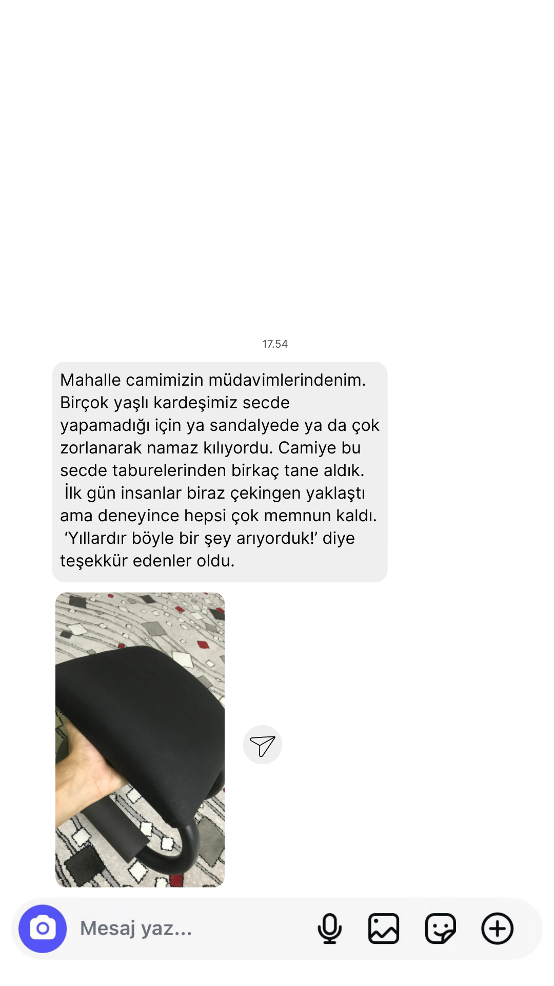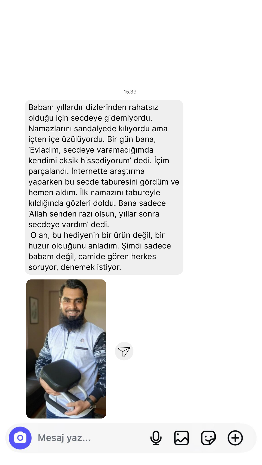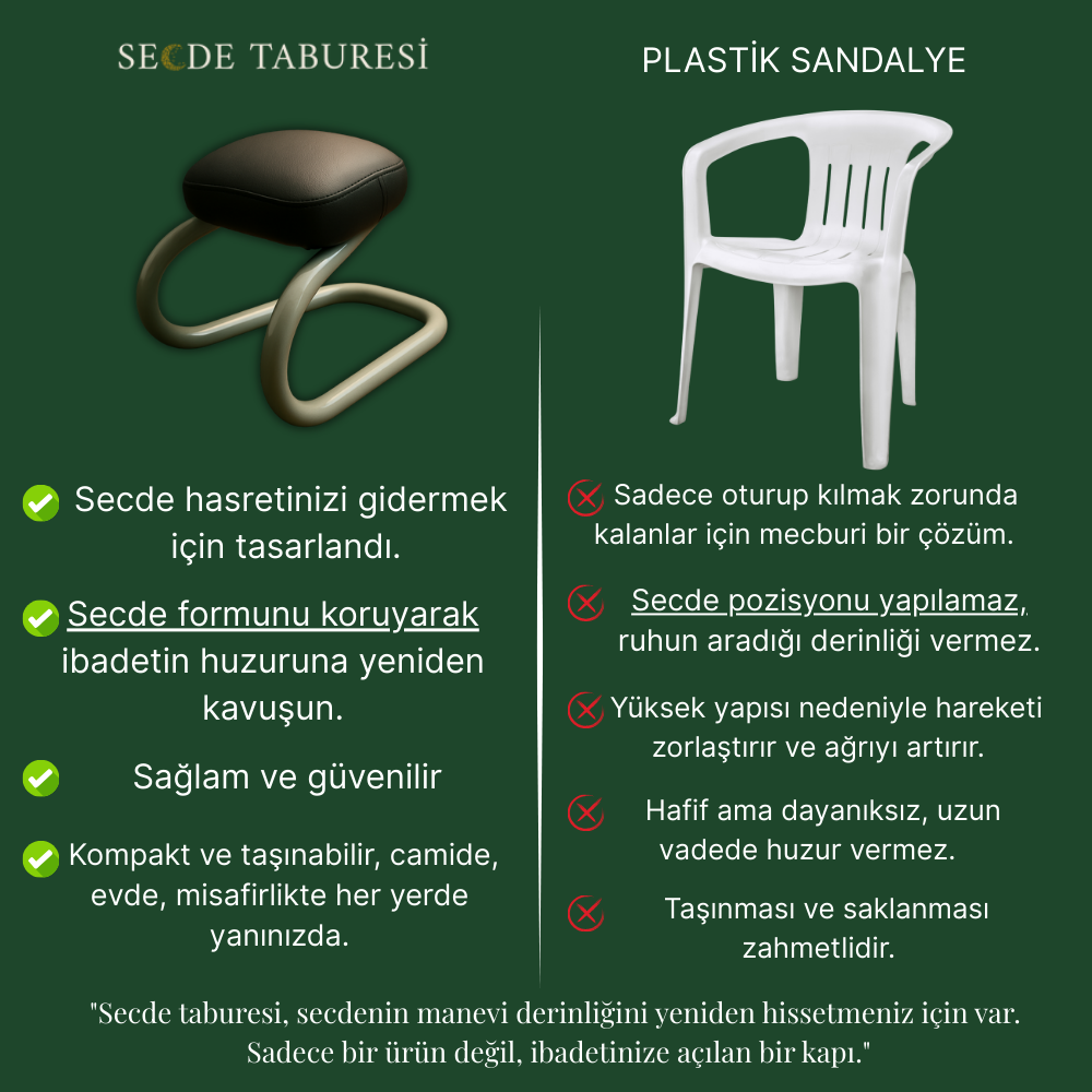 Sandalyede kılınan namaz, secdeyi tam yaşatmaz. Secde Taburesi ile dizleriniz yere değer, secdeniz eksiksiz olur.